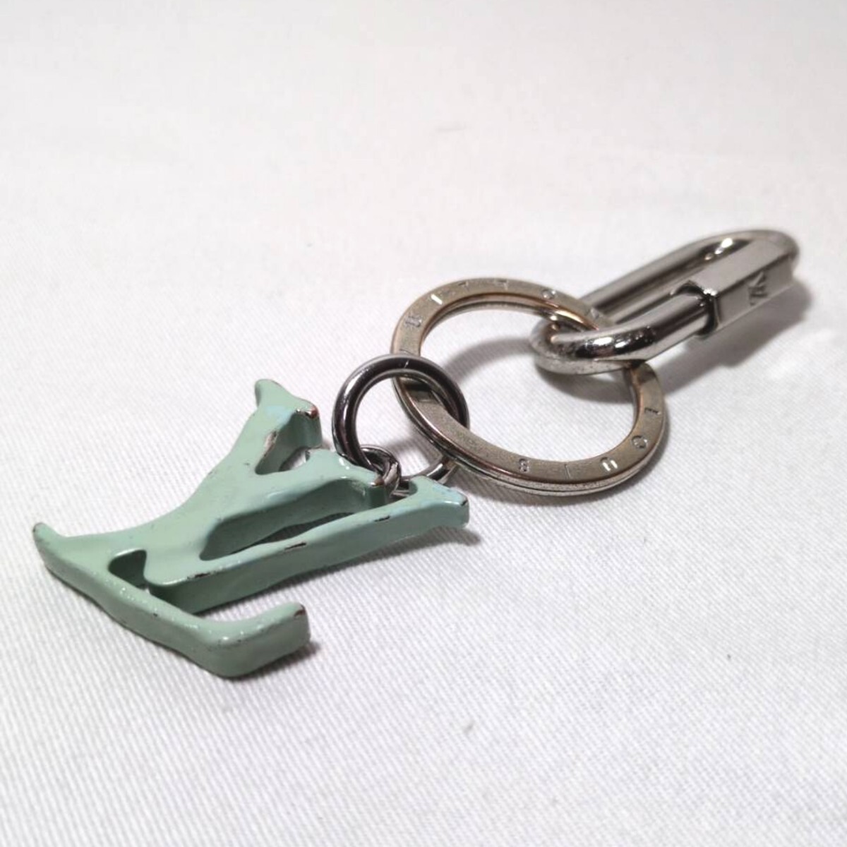 > ルイヴィトン LOUIS VUITTON シルバー×ブルー系 ポルトクレ LVシェイプ キーリング チャーム
