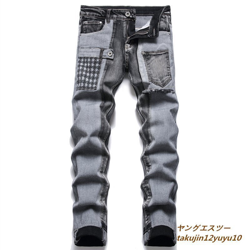 - ジーンズ 新品 メンズ デニムパンツ ジーパン 切替ストレート トレンド 欧米風バイクパンツ スキニー 個性ヴィンテージ チノパン 選択可 34