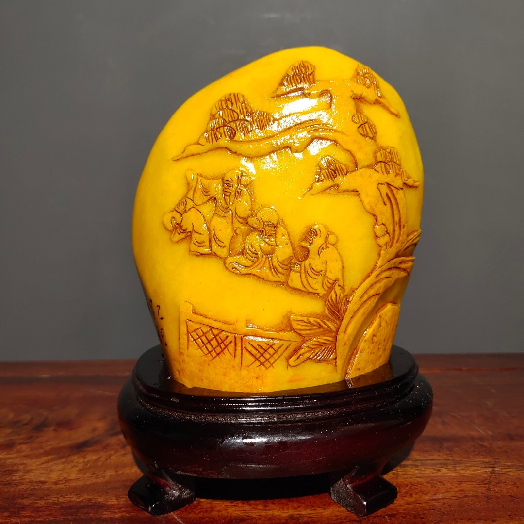 - 【超珍館蔵】寿山石 田黄石 細密彫 高士輪道紋印章 印章 印鑒 文房具 書道品 古賞物 古董品 古美術品 時代物 旧家蔵出 稀少珍蔵品