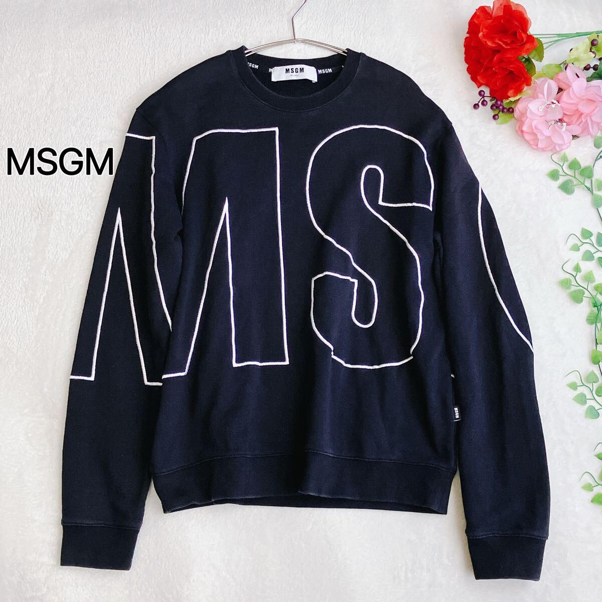 - MSGM エムエスジーエム★オーバーサイズ デカロゴ刺繍 トレーナー スウェット ユニセックス ブラック【体型カバー】
