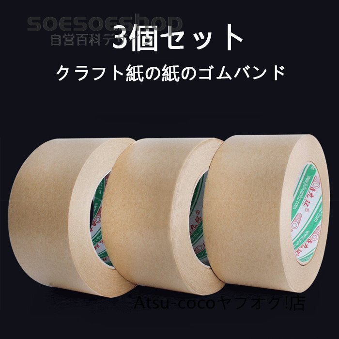 - クラフト紙 ゴムバンド テープ 超強力 多機能 多サイズ 家庭 オフィス 寮 学校 会社 工業用 クラフト(紙)テープ(6cm*50m) 3個セット