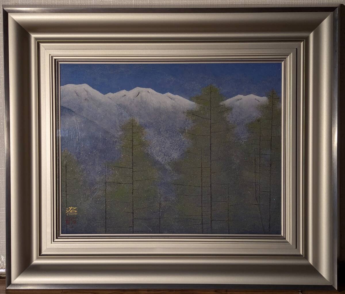 - 【真作】絵画 佐藤昭三 日本画6号 白峰 静寂の山岳風景 箱・黄袋入 Y152