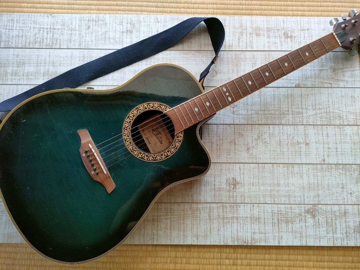 > 【希少カラー】Aria AWE-35 グリーン カッタウェイ アコースティックギター 装飾ロゼッタ付き ヴィンテージ 良音 即決あり