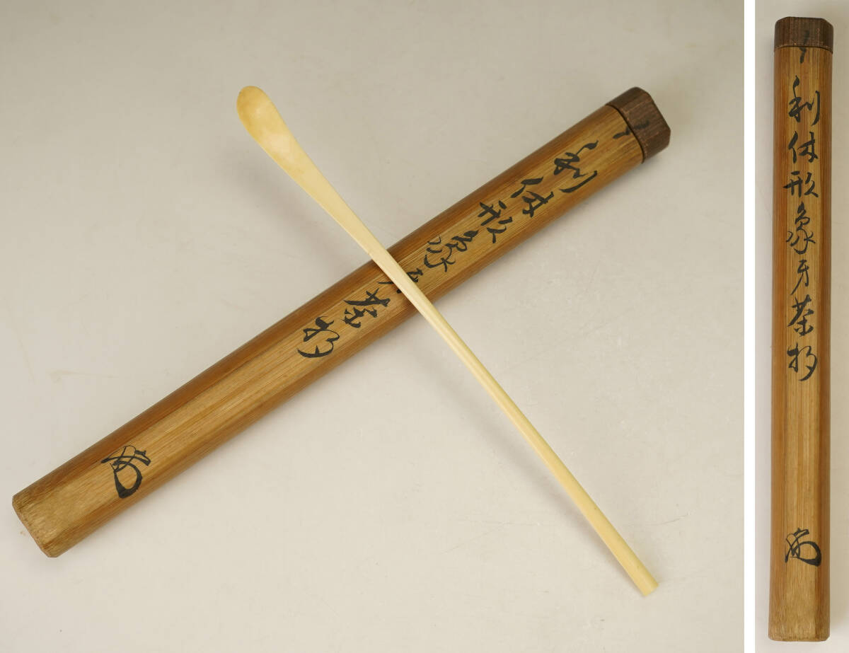 - 鳳】高級材 利休形 茶杓 天然素材 共筒 259-1検:マンモス 表 裏 千家 根付 中国 骨董 茶道具 花瓶 鉄瓶 常滑焼 銅器