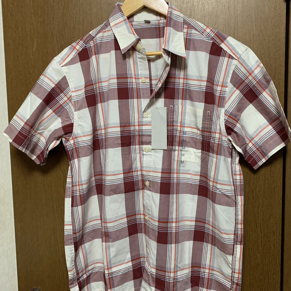 - M【UNIQLO|半袖シャツ】ユニクロ マドラスチェックシャツ Wine 未使用