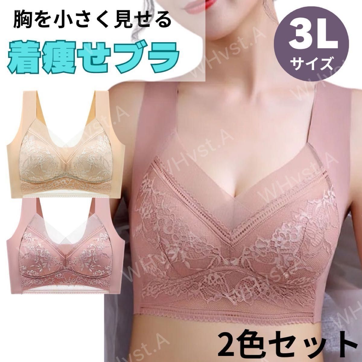 - 3L ピンク ベージュ 胸を小さく見せるブラ シームレス ノンワイヤー スマートブラ 2枚セット 美胸