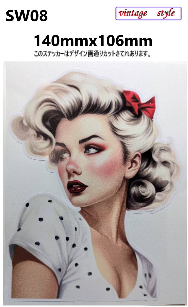 - SW08-05 レトロ 美人 セクシー&クール 顔上半身 ヴィンテージスタイル ピンナップガール セクシーステッカー ギター デカール