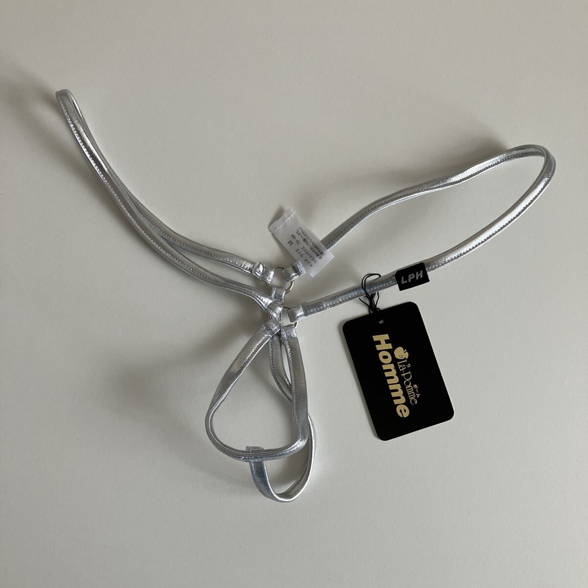 > ラポームオム メンズ La-pomme homme メンズ メタリック生地 フロントオープンスタイル Gストリング シルバー M