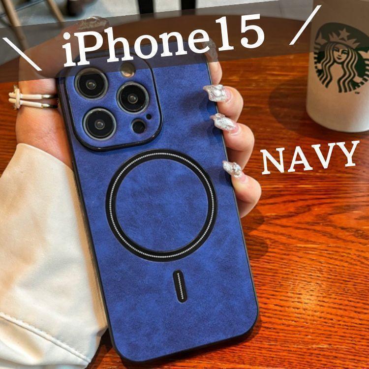 - 新品 iPhone15 レザー ケース ワイヤレス 充電 ブルー ネイビー 青 iPhoneケース 携帯カバー シンプル かっこいい スマホカバー