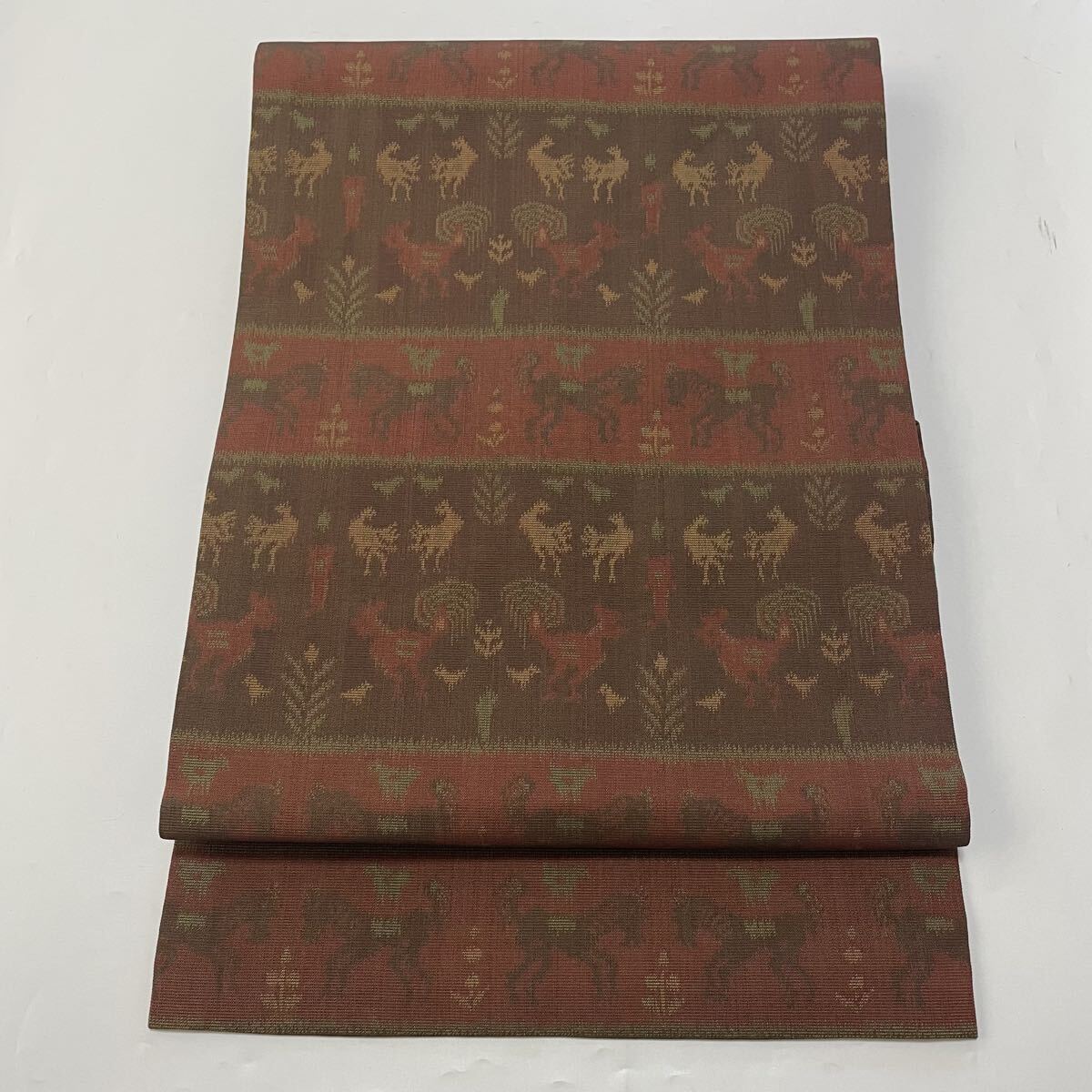 > #H918 美品 名古屋帯 九寸 ロバ 鶏 正絹 和装 和服 カジュアル帯 お洒落【wellriver】