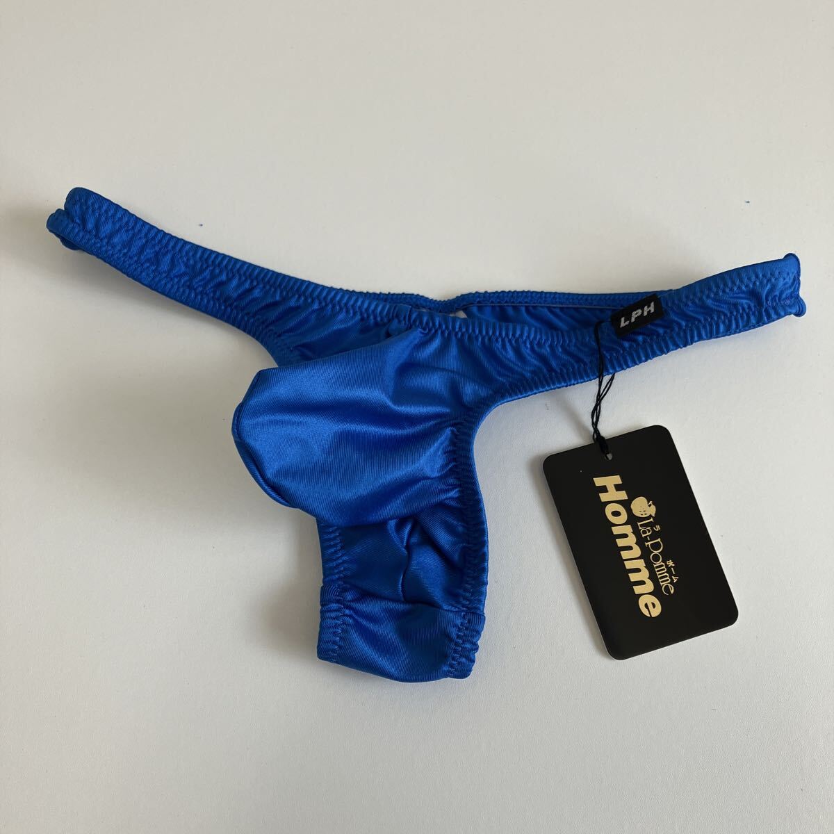 > ラポームオム メンズ La-pomme homme 立体フロント下着 メンズビキニ 光沢 K2Sストレッチ Tバック ブルー M