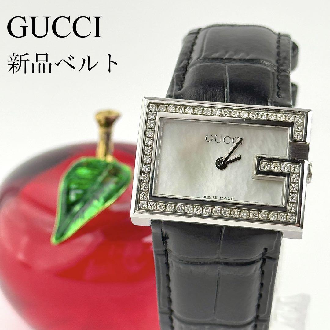 - 【新品ベルト】521 グッチ ダイヤベゼル シェル文字盤 レディース Gフェイス