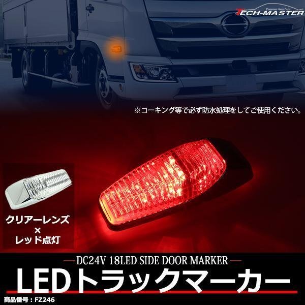 - トラック LEDドア サイドマーカー DC24V マーカーランプ クリアーレンズ レッド点灯 FZ246