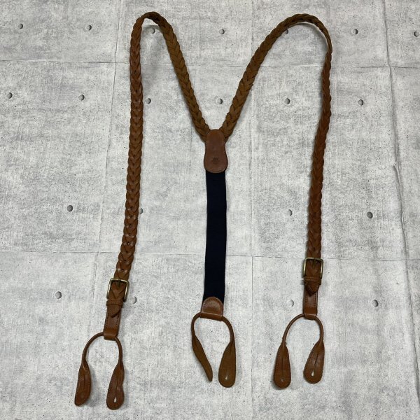 - 希少 Whitehouse Cox サスペンダー ホワイトハウスコックス メッシュレザー 編み込み 革 ブレイシーズ ブラウン 石瀬7141