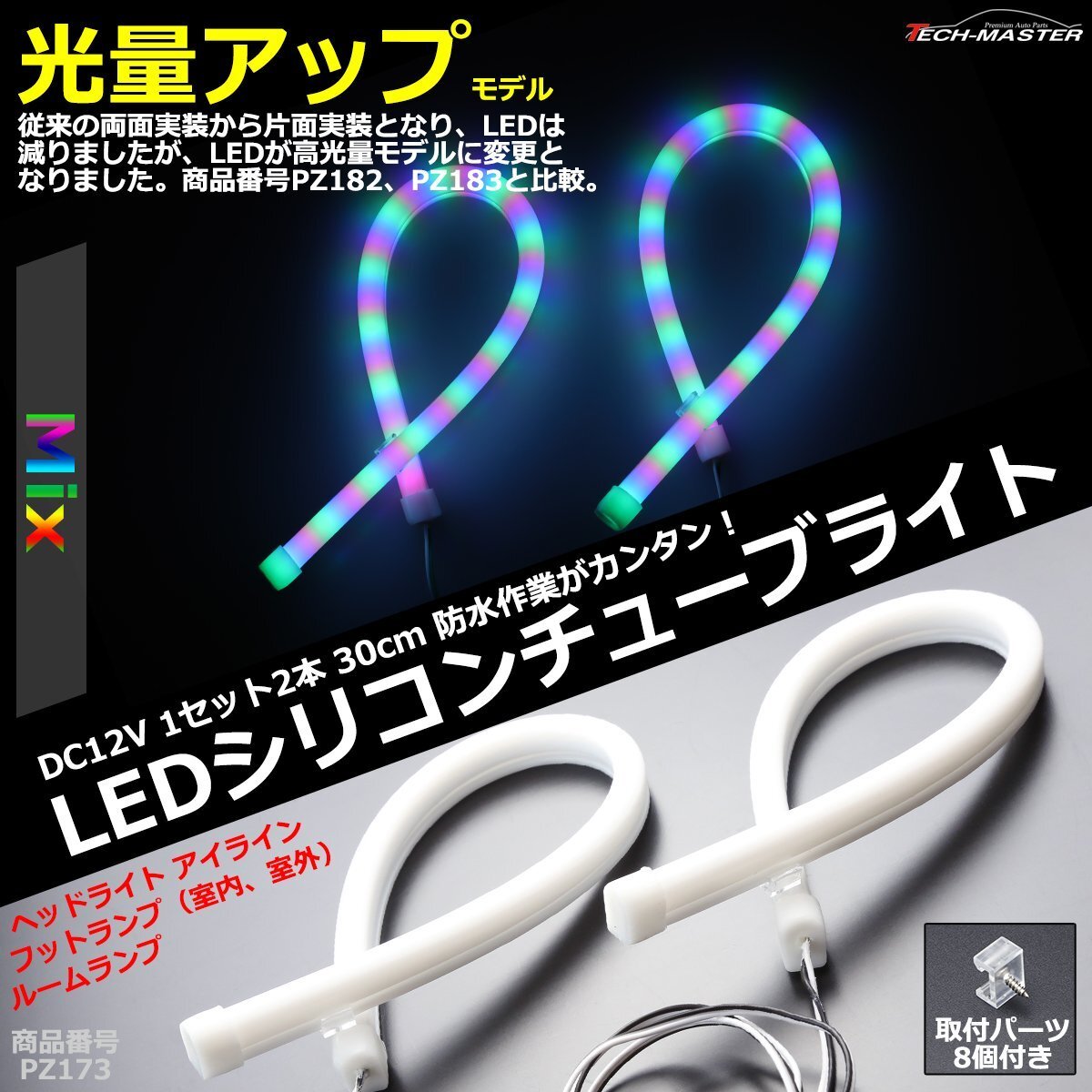 - ヘッドライト アイライン LEDシリコンチューブ 30cm ミックスカラー DC12V 汎用 PZ173