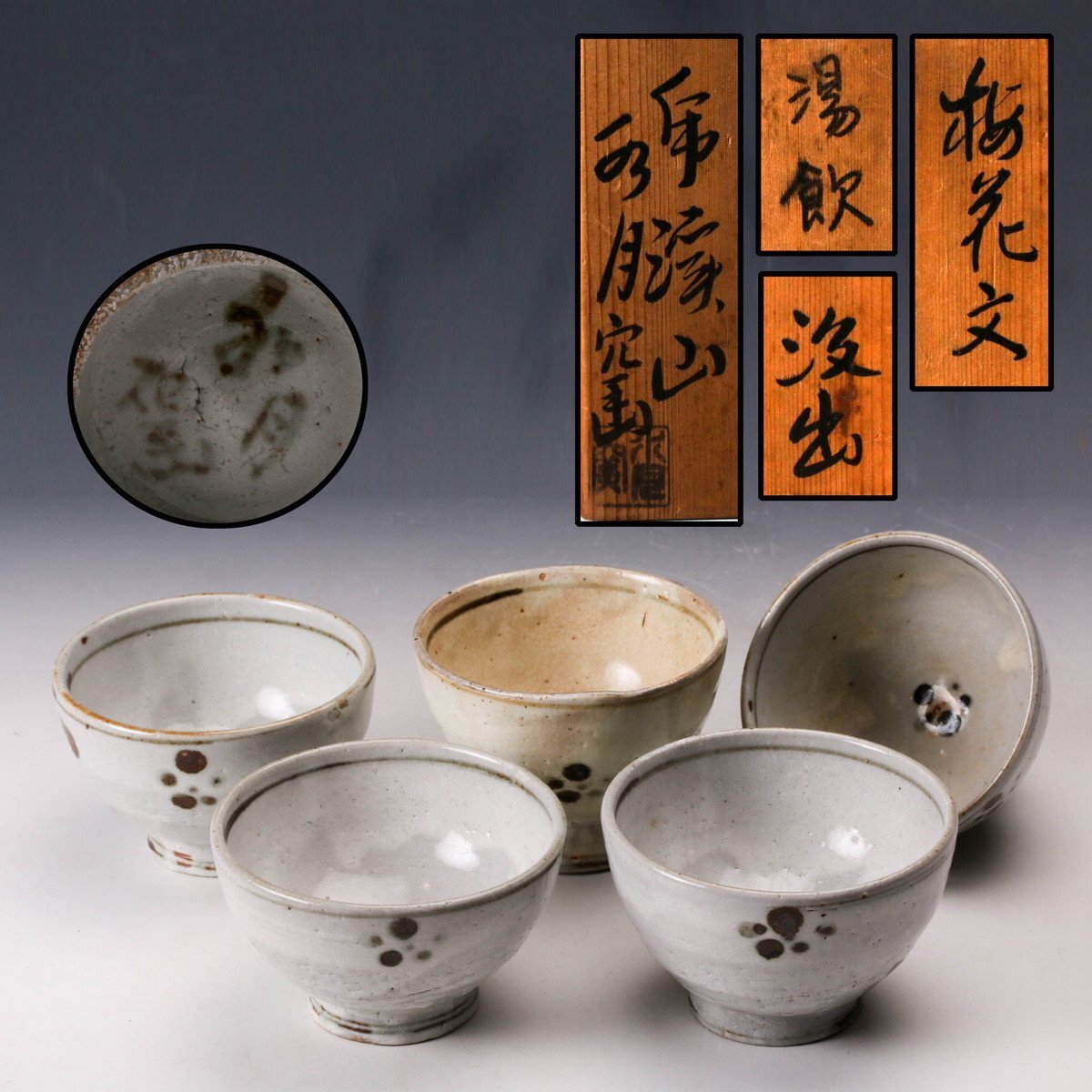 【佳香】水月窯 虎渓山 人間国宝 荒川豊蔵 梅花文汲出 五客 共箱 本物保証拍卖
