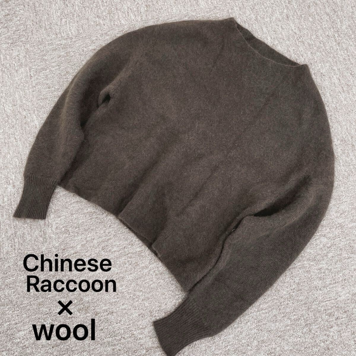 - 【651】チャイニーズラクーン ブラウン ニット ウール 長袖ニット ふわふわ ラクーンニット セーター アパートバイローリーズ