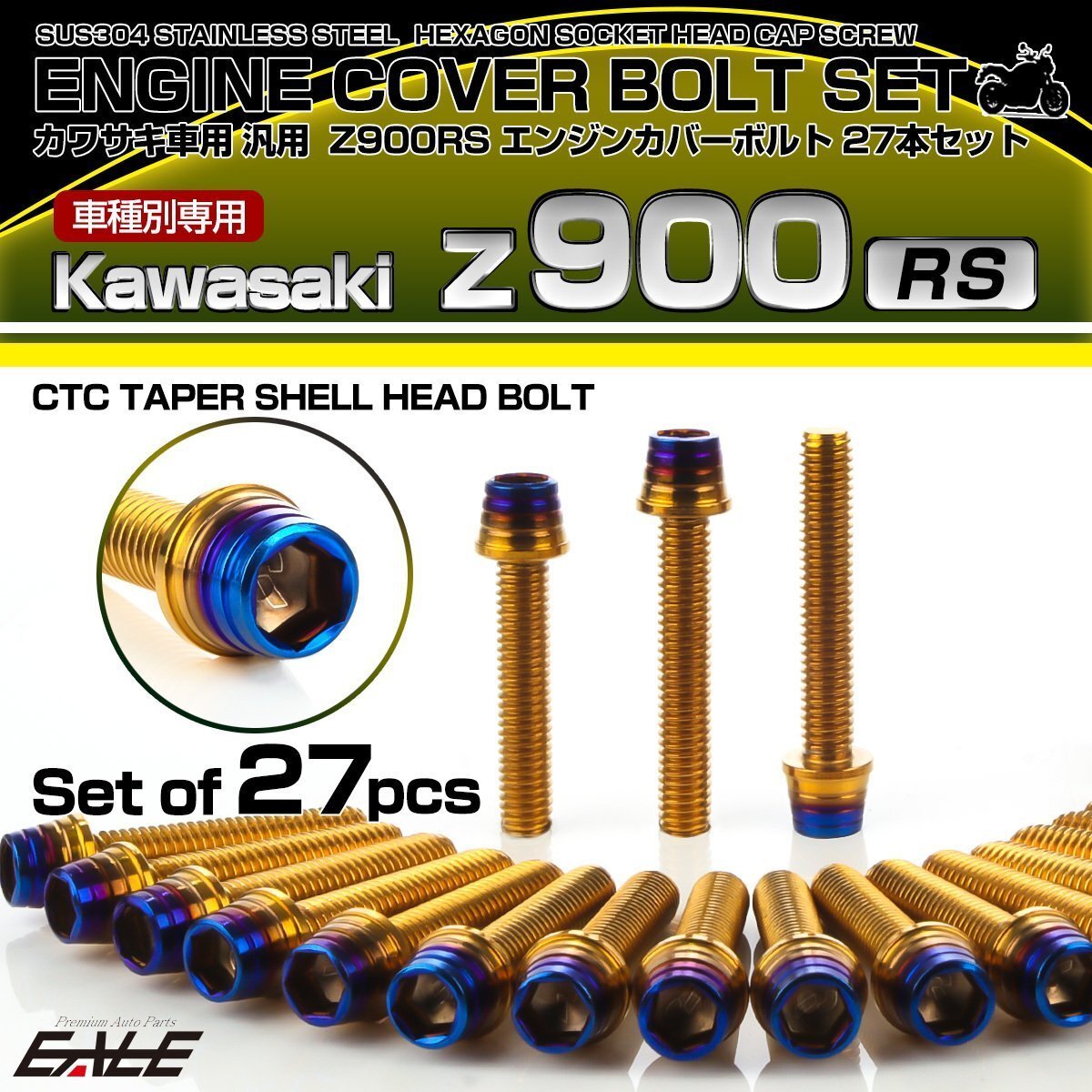 > Z900RS エンジンカバーボルト 27本セット カワサキ車用 CTCテーパーシェルヘッド ゴールド&焼きチタンカラー TB8176