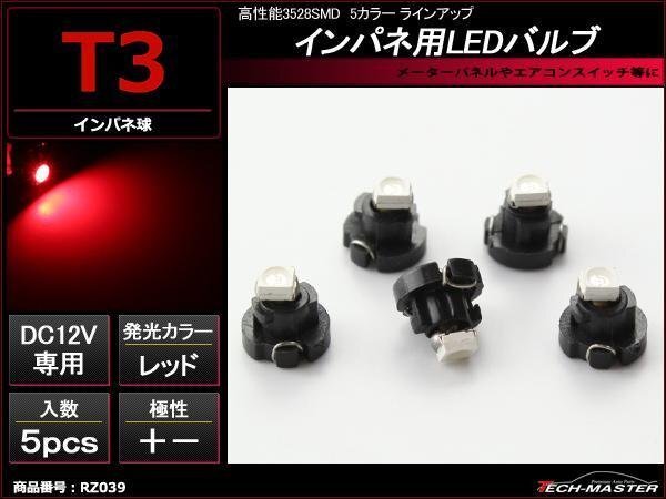 - T3 3528SMD LEDインパネ球 メーターパネル等 レッド 5個入 RZ039