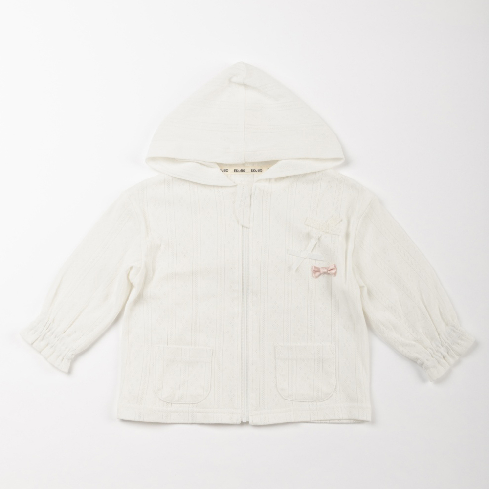 > ☆ ホワイト ☆ 90cm ☆ EKUBO りぼんパーカー 夏 薄手 パーカー キッズ 綿100 ジップアップパーカー 前開き 綿100% コットン100 子供