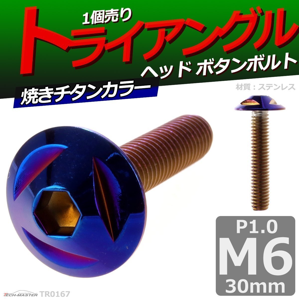 - M6×30mm P1.0 ボタンボルト トライアングルヘッド ステンレス 車/バイク/自転車 ドレスアップ パーツ 焼きチタンカラー 1個 TR0167