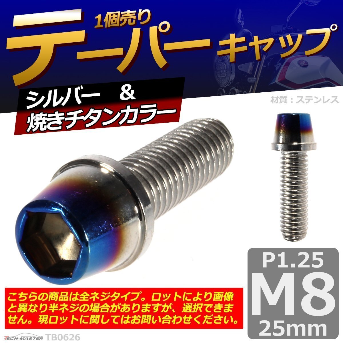 > M8×25mm P1.25 テーパー キャップボルト ステンレス 車/バイク/自転車 ドレスアップ パーツ シルバー&焼きチタンカラー 1個 TB0626