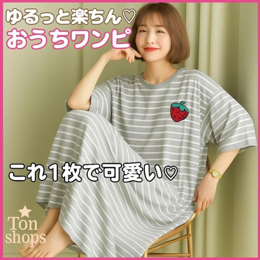 - ゆったりワンピースルームウェア グレー 体型カバー マタニティ おしゃれ部屋着