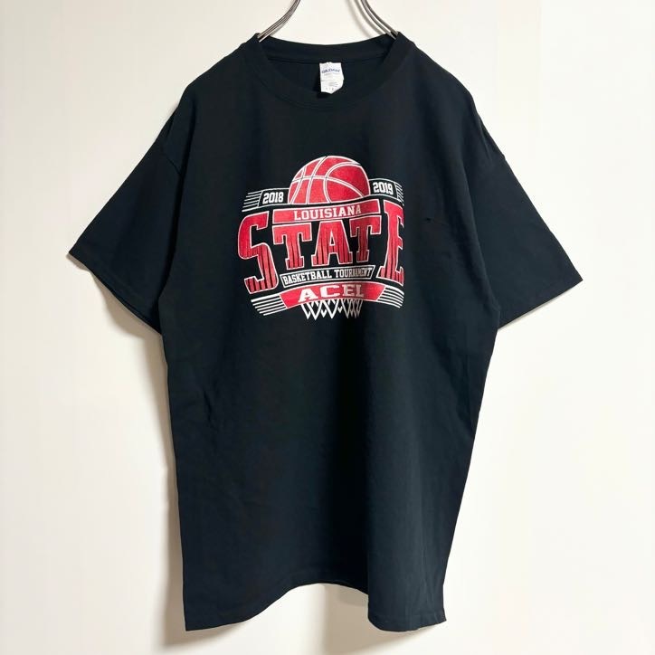 > 古着 used GILDAN ギルダン 半袖プリントスタッフTシャツ クルーネック スポーツ 黒 ブラック 春夏服 Mサイズ
