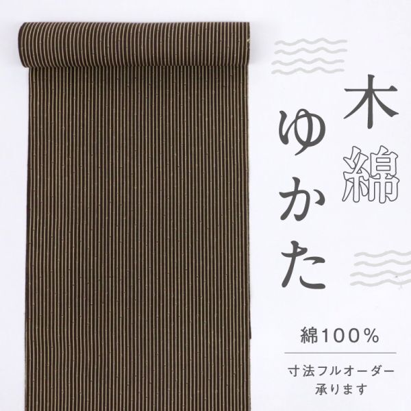 - 【反物】 浴衣 京捺染 シンプル竹縞模様 濃茶 木綿 夏着物 お仕立て可 反25-19