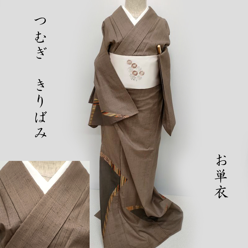 - Club藤★単衣 きりば紋 紬 名物列 付け下げ カジュアル着物 お仕立上り(3448)