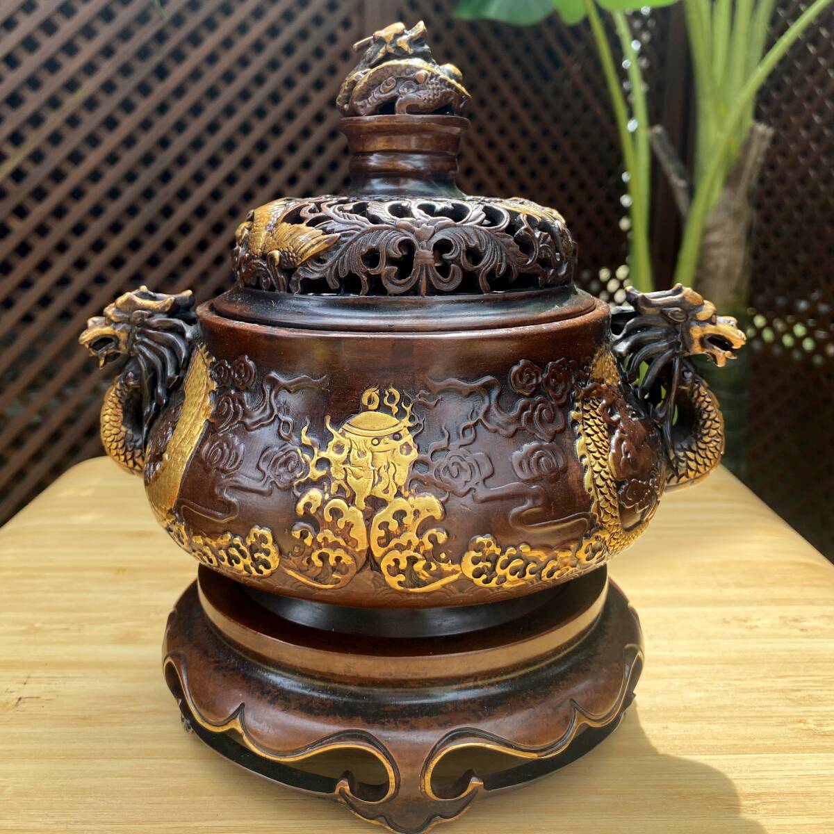 > 香炉 時代旧蔵 大明時代 宣徳年制 紫銅真金 双竜香炉 銅製 仏教古美術 細密細工 廃寺旧蔵 廃寺買出品 古置物 中国古玩 MS6-030618