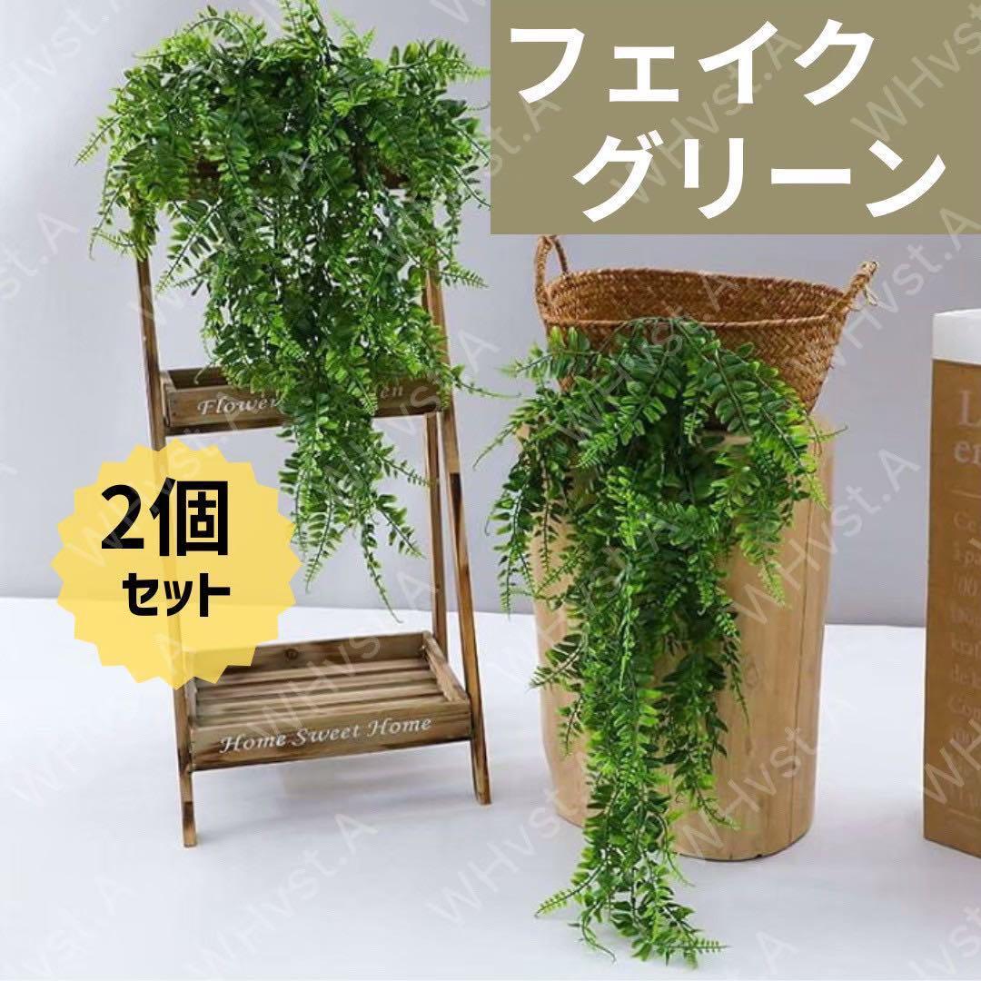 - フェイクグリーン2個セット 造花 インテリア壁飾り 壁掛け 観葉植物 水やり不要