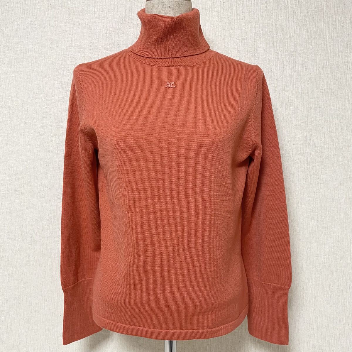 > 即決☆courreges クレージュ ハイネック タートルネック ウール ニット セーター イトキン 40 美品 L オレンジ系