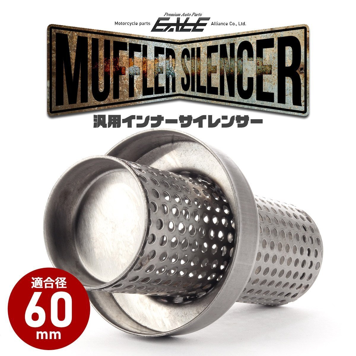 > バイク 汎用 適合径60mm ショート パンチングメッシュ マフラー インナーサイレンサー バッフル 消音器 ステンレス 排気音抑制 S-1011