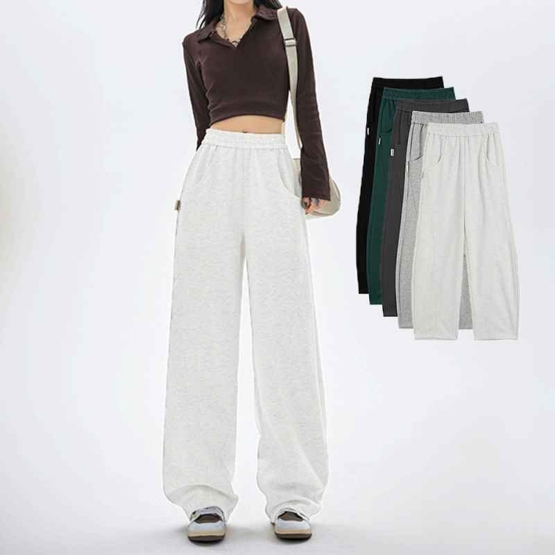 - スウェットパンツ スポーツボトムス ロング丈 イージーパンツ ウエストゴム ダンス衣装 ワンサイズ(L) ライトグレー