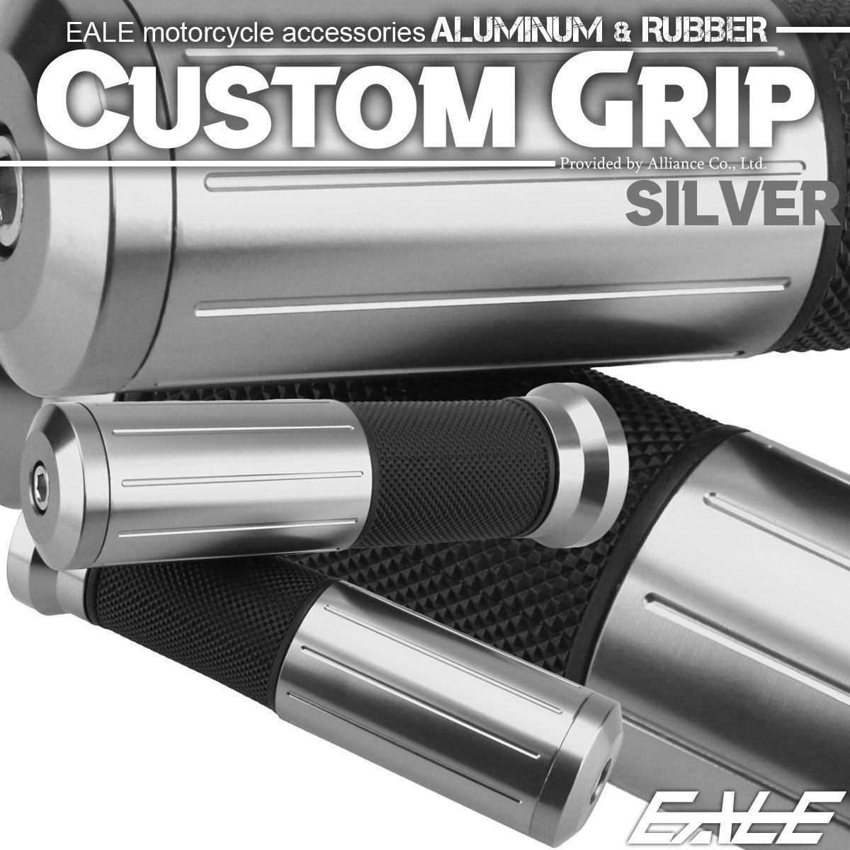 > バイク グリップ ハンドル アルミ ラバー バーエンド付き 22.2mm用 シルバー 左右セット カスタム ドレスアップ S-578-S