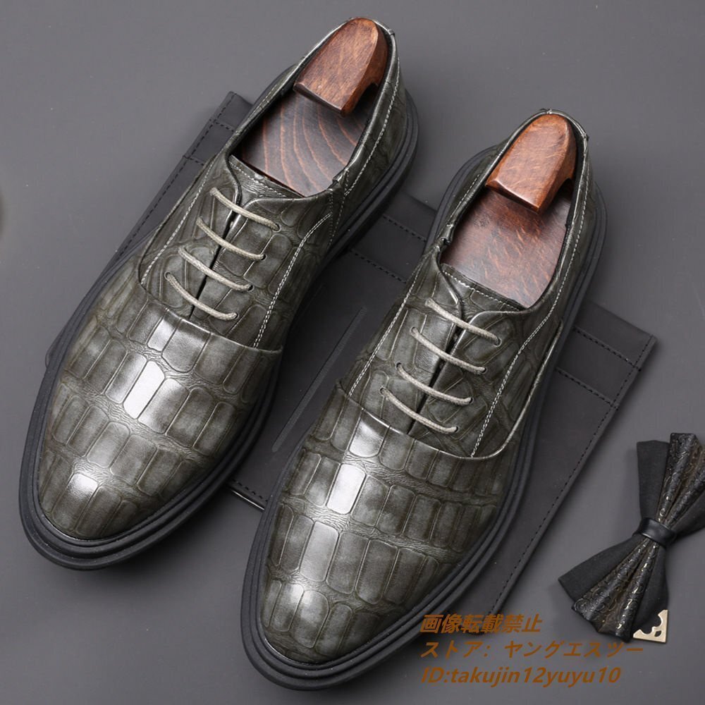 - 限定セール ビジネスシューズ 新品 メンズ 本革レザーシューズ 職人手作り 鰐柄 高級 革靴 紳士靴 皮靴 トップレイヤー グレー系 27.0cm