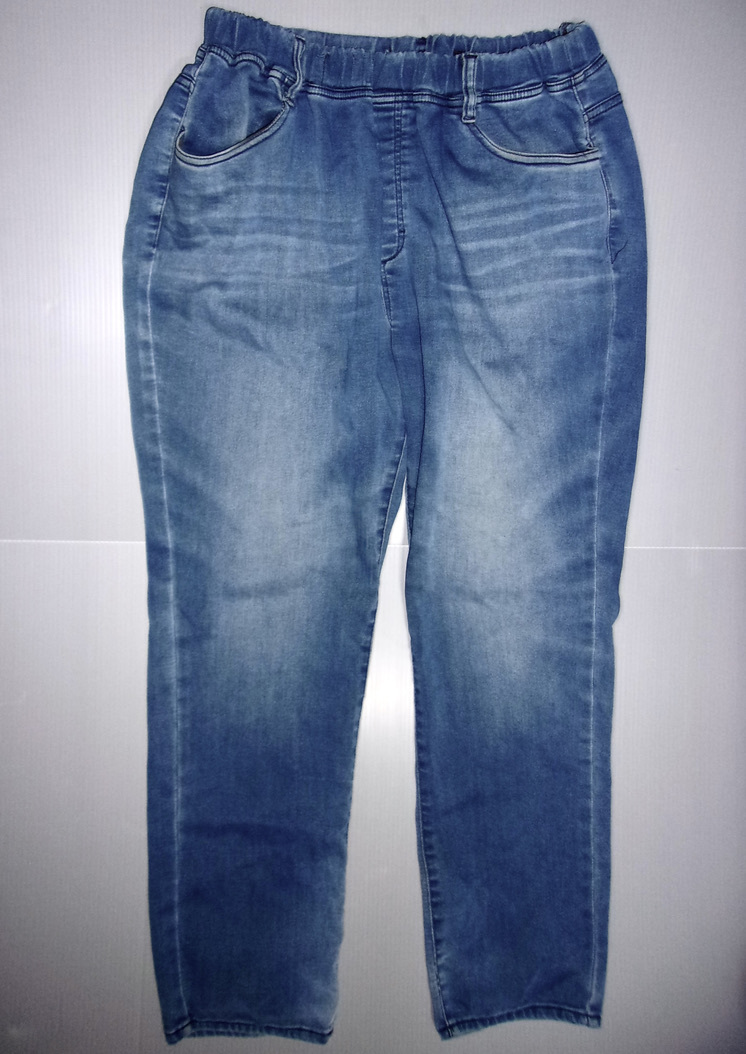 - CONRON ストレッチ ジーンズ 柔らか デニム ウエストゴム ジップなし レディース 4L ウエスト93~101 ネイビー 水色 裏地黒柔らか生地