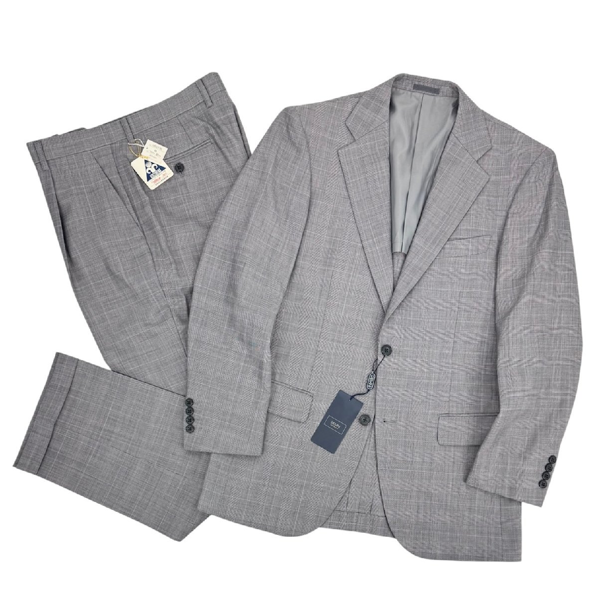 - 未使用品 FARIANI ファリアーニ グレン チェック柄 ウール シングル 2B ワンタック スーツ 裾ダブル 通年素材 94A6 M~L相当 グレー 青山