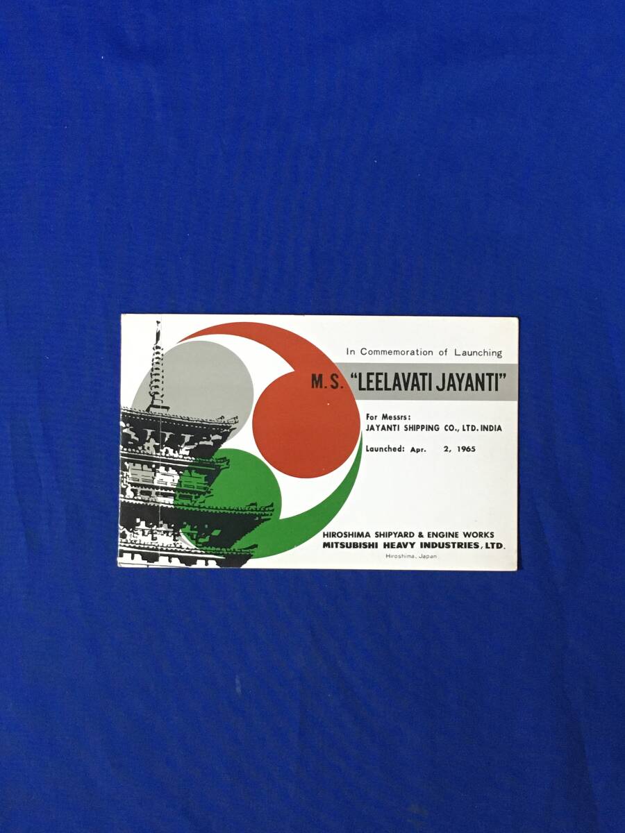> AK657イ●海外向け/1965【外国船舶進水記念:絵葉書⑧】M.S.Leelavati Jayanti●三菱/広島造船所●鉱石/油運搬船/昭和40年