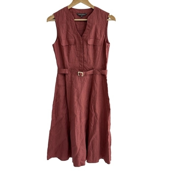 > ローラアシュレイ LAURAASHLEY サイズ9 M - ボルドー レディース Vネック/ノースリーブ/ロング/麻 美品 ワンピース