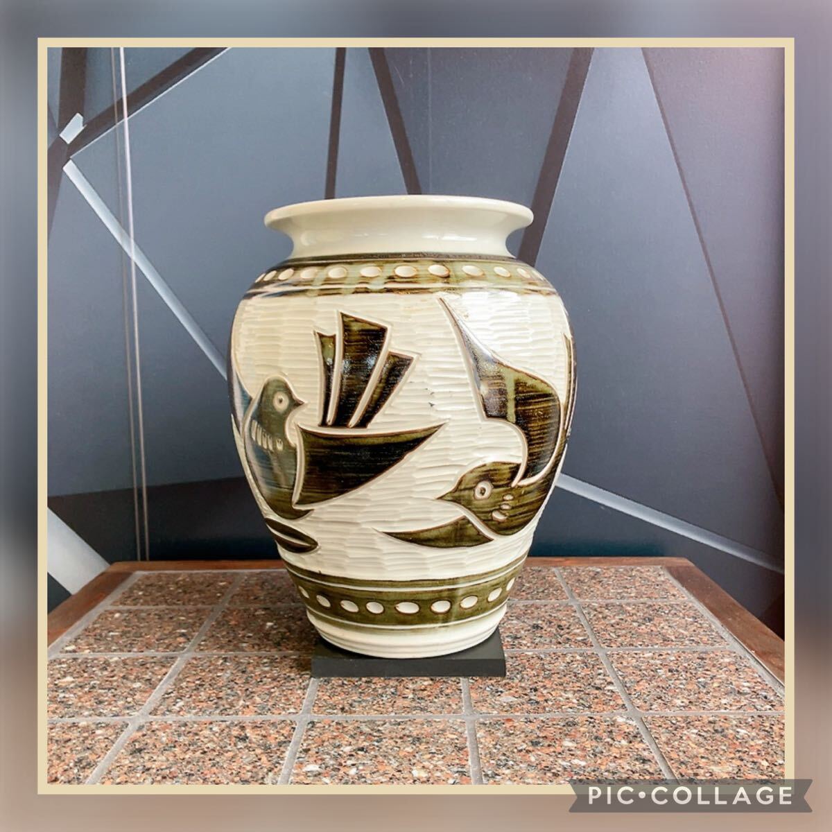 - 【実家の片付けシリーズ】鳥モチーフ 花瓶 花器 壺 ヴィンテージ調 すずか焼