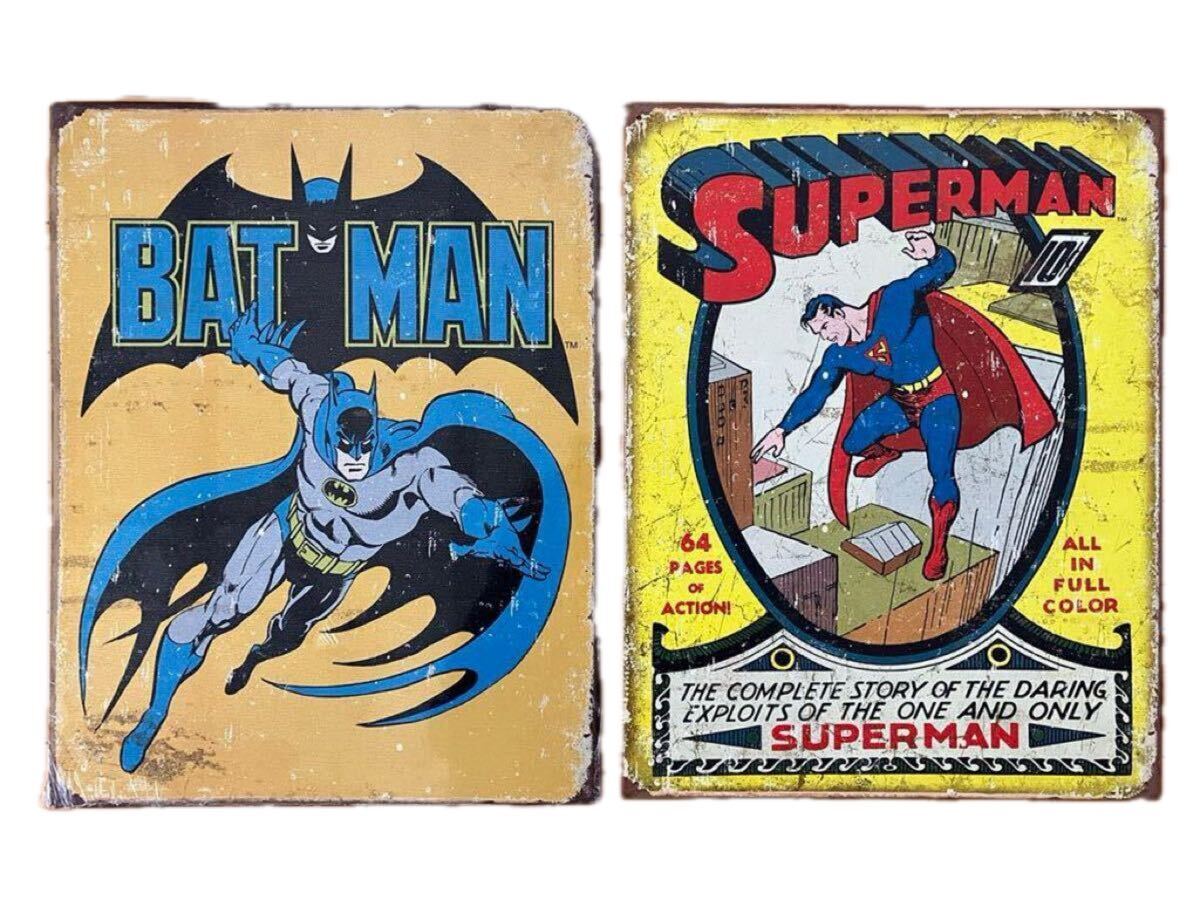 > SUPERMAN(スーパーマン)・BATMAN(バットマン)/メタルサインプレート(看板)/アメコミ/ヴィンテージ風・レトロ風/2枚セット