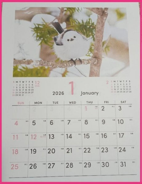 - 【送料無料:1冊:可愛い:「もふもふ 動物2」:カレンダー:A4:30x21cm】★2026年 アニマル,小鳥:シマエナガ,うさぎ,リス,モモンガ★壁掛け:暦