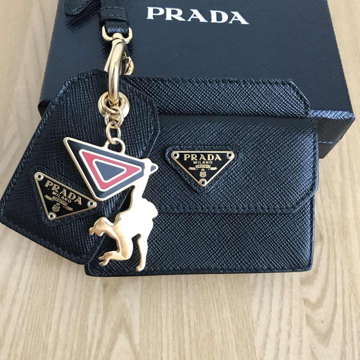 > 激レア PRADA プラダ トライアングルロゴ モンキーチャーム付 カードケース カードホルダー コインケース バッグチャーム