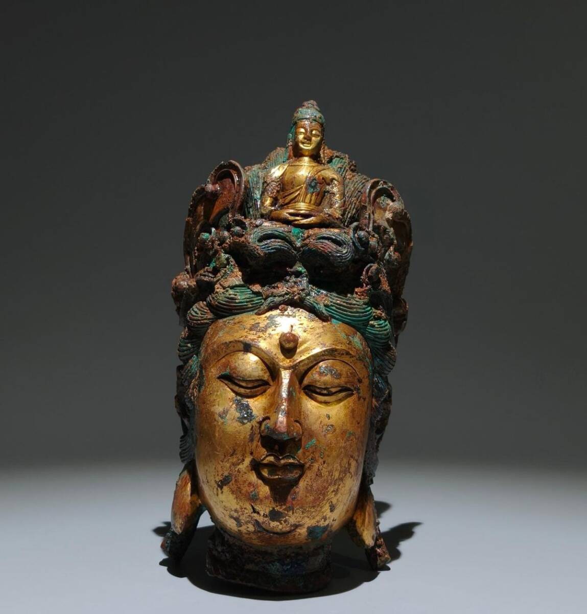 > 永し 唐代時期 青銅器 塗金 佛首 佛像 仏像 宗教 仏教古美術 極細工 古銅彫 置物擺件 古美術品 時代物 古董品 収集 旧家蔵出 中国唐物 A9