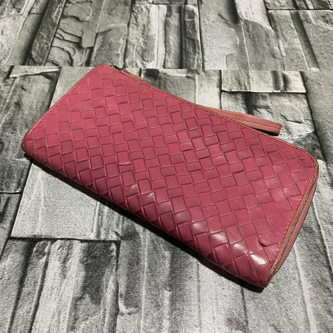 > BOTTEGA ボッテガべネタ イントレチャート 長財布 L字ラウンド ピンク