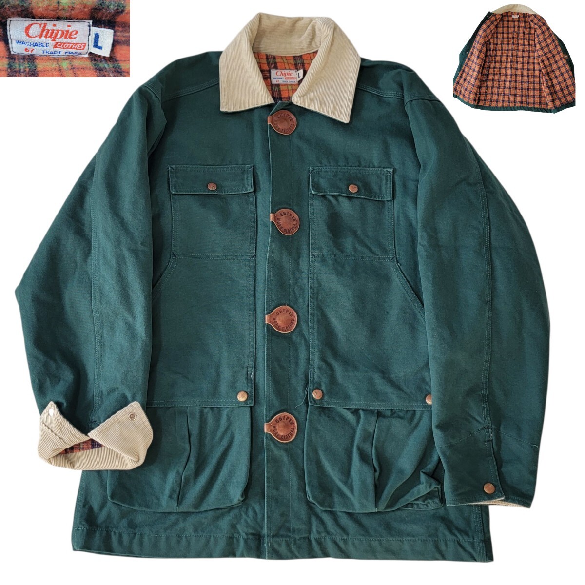 > 希少 80S-90S フランス製 シピー CHIPIE カバーオールジャケット L 日本L~XL ハンティングジャケット 緑 ダックジャケット