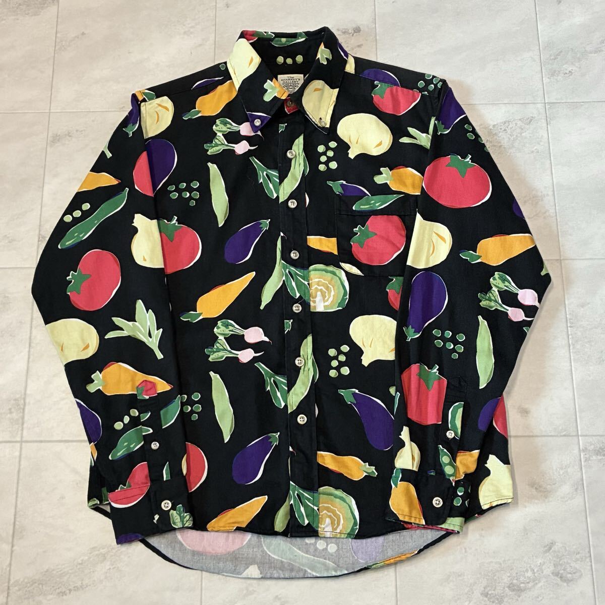 > THE SHARKEY'S GALLERY 総柄 柄シャツ 野菜 vegetable ボタンダウン 長袖シャツ