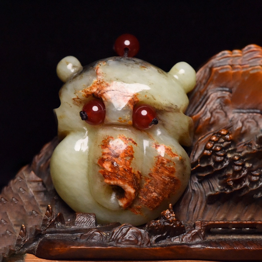 - TM9#8326【3.1】人間国宝 中国骨董 和田玉 玉石 印章 彫刻品【和田玉仮面佩きです】 時代物 本物 珍品旧蔵 伝世家珍
